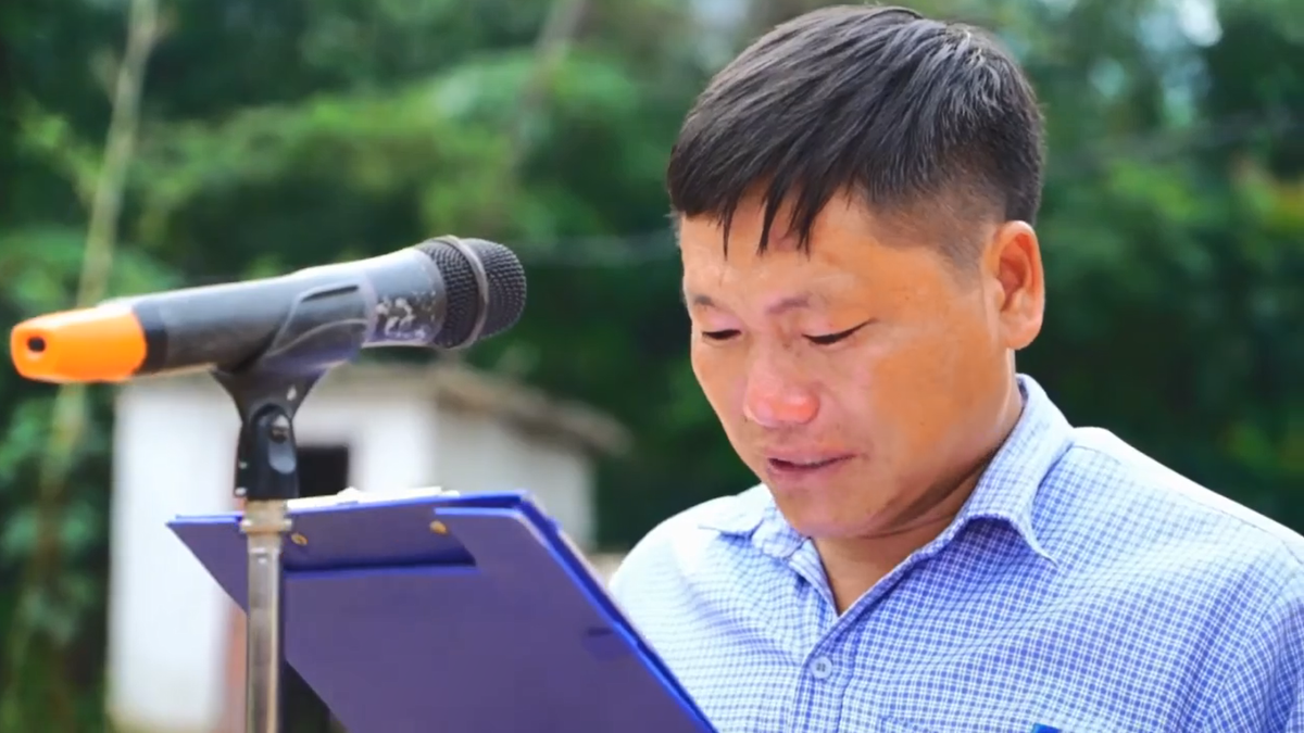 Bí thư thôn Nậm Tông bật khóc nức nở, nói không nên lời khi phát biểu chia tay lực lượng thực hiện nhiệm vụ tìm kiếm cứu nạn, cứu hộ tại thôn Nậm Tông, Lào Cai.