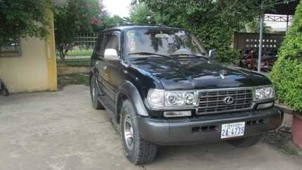 Hai chiếc xe ô tô Lexus, Toyota mang biển kiểm soát Campuchia mà ông Thê thường hay sử dụng. Hai chiếc xe này bị công an huyện tạm giữ để điều tra. Ảnh: Phan Cường