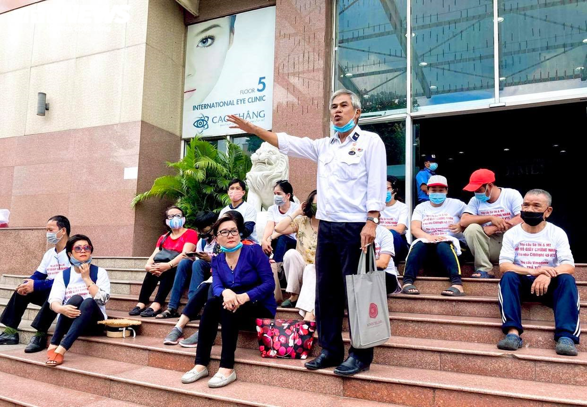 Hàng chục nhà đầu tư tập trung trước toà nhà Citilight Tower ngày 16/9.