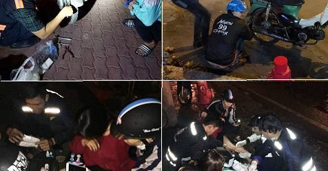 Người phụ nữ bị té xe được Biệt đội hỗ trợ SOS Sài Gòn giúp đỡ.