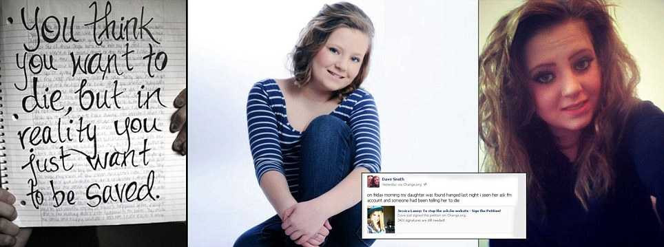 Ông Dave Smith, cha của Hannah viết trên Facebook: “Sáng 2/8, con gái tôi được tìm thấy trong tình trạng đã chết vì treo cổ. Tối qua, tôi có thấy tài khoản ask.fm của con bé và vài người nói rằng Hannah đã chết”.