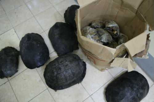 Kiểm tra thùng hàng đối tượng bỏ lại, cảnh sát phát hiện 26 cá thể rùa vẫn còn sống, tổng trọng lượng là 82kg. Trong đó có 7 cá thể rùa màu đen nặng từ 8 đến 12kg, 19 cá thể rùa nhỏ nặng khoảng 1kg/con.