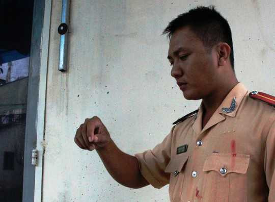 | Trung úy Kiều Văn Định kể lại vụ việc vây bắt nhóm dàn cảnh cướp giật sáng 16/9. |