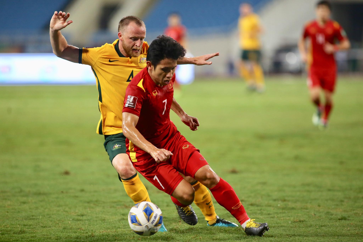 Khối bê tông của HLV Park Hang Seo đã chống chọi rất tốt trước áp lực của Australia. Thậm chí, tuyển Việt Nam còn là đội có cơ hội trước. Phút thứ 7, Phan Văn Đức chạm bóng thuận lợi để Nguyễn Quang Hải đối mặt cầu môn Australia, nhưng cầu thủ sinh năm 1997 dứt điểm đưa bóng đi vọt xà ngang.