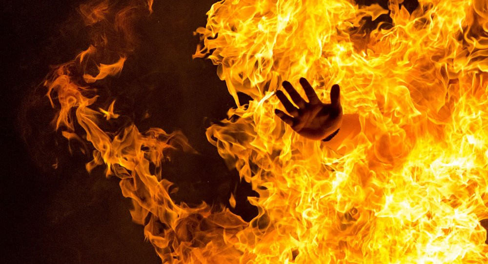 Hoàng dùng xăng tạt lên mùng và đổ lên người của mình, rồi dùng bật lửa tự thiêu. Hoàng còn dùng dao gây thương tích lên mặt chị M. Sự việc khiến Hoàng, chị M. và cháu T. đều bị bỏng nặng, phải nhập viện điều trị.