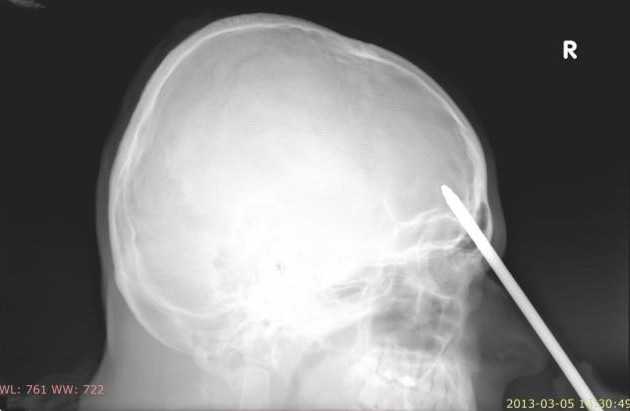 May mắn là cây tua vít đã không gây ảnh hưởng nặng đến vùng mắt và bộ não của bệnh nhân.