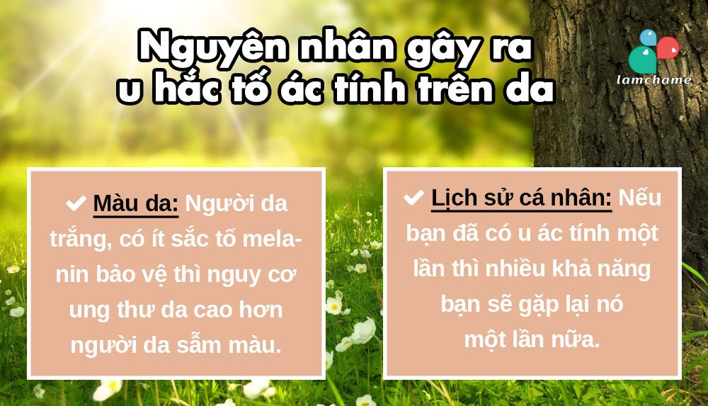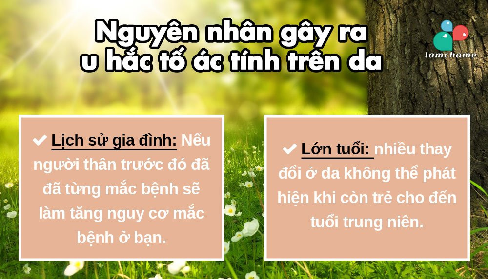 U hắc tố là loại ung thư da nguy hiểm nhất. Nó xảy ra sau khi DNA trong tế bào da bị tổn thương (thường là do tiếp xúc quá nhiều với tia cực tím) và sau đó không được sửa chữa nên gây ra các đột biến có thể hình thành các khối u ác tính.