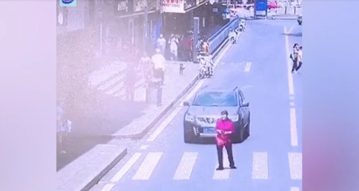Sang được nửa đường, người phụ nữ bỗng dưng đổi ý quay đầu khiến tài xế ô tô không kịp tránh.