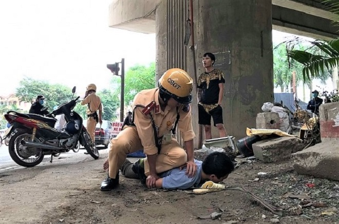 Theo cơ quan công an, chiều qua, tổ công tác thuộc Đội CSGT số 7 (Phòng CSGT Công an Hà Nội) làm nhiệm vụ tuần tra tại địa bàn quận Hà Đông và quận Nam Từ Liêm thì phát hiện Bằng lái xe máy mang BKS 12S1-176.81 có biểu hiện vi phạm nồng độ cồn nên yêu cầu dừng xe để kiểm tra.
