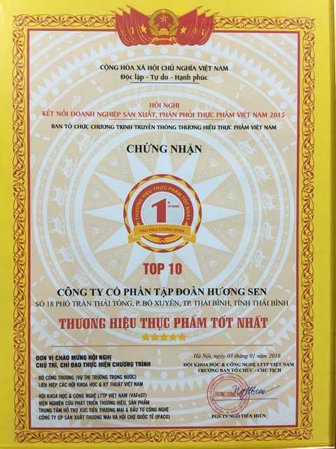 Trước đó, các sản phẩm của Tập đoàn Hương Sen đã nhận được nhiều giải thưởng uy tín như: 15 Huy chương vàng tại các hội chợ, Thương hiệu mạnh Việt Nam, Thương hiệu nổi tiếng quốc gia, Cúp vàng Nhãn hiệu nổi tiếng, Giải thưởng Sao vàng đất Việt, Giải thưởng Chất lượng vàng,…