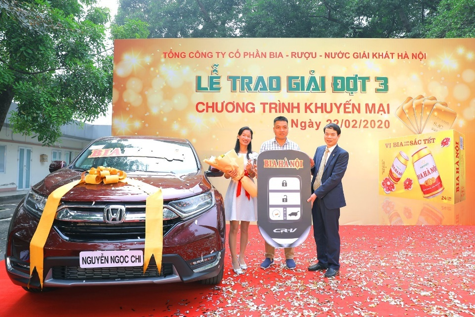 Cách đây gần 2 năm, chị Nguyễn Ngọc Chi (Hà Nội), trong cuộc tụ họp gia đình nhân dịp Tết Nguyên đán Canh Tý 2020, thử vận may với chương trình khuyến mại Tết của Bia Hà Nội. Ở giây phút đó, chị không nghĩ mình là một trong 2 người may mắn nhận giải đặc biệt của chương trình khuyến mại này, với phần thưởng là một chiếc ôtô Honda CRV.