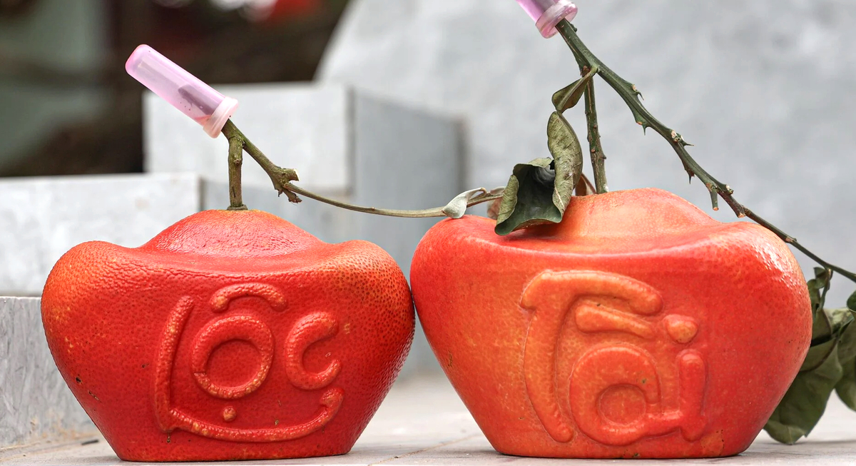 Điều đặc biệt của loại bưởi này chính là được tạo hình chữ tài - lộc, với hai loại bưởi là bánh men và trái nũm. Quá trình tạo hình bưởi được thực hiện từ lúc quả còn non, đòi hỏi sự kỳ công và độc đáo từ người trồng.