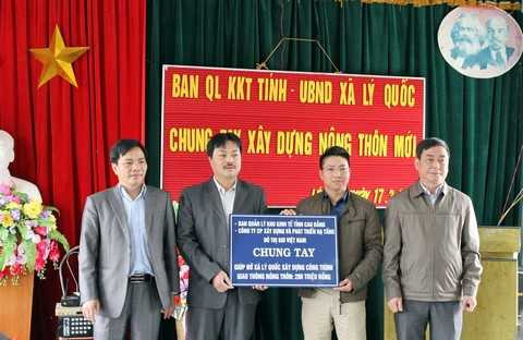 Số tiền này đã được ông Trần Văn Mạnh – Chủ tịch HĐQT, Tổng giám đốc BID Việt Nam trao cho UBND xã Lý Quốc ngày 17/3/2016. Công trình tiếp nhận sự hỗ trợ này là đường giao thông nông thôn xóm Bản Khoòng có chiều dài trên 800m.