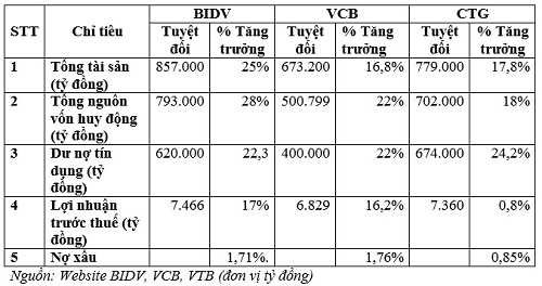 Một số chỉ tiêu kinh doanh chính của 3 ngân hàng hàng đầu
