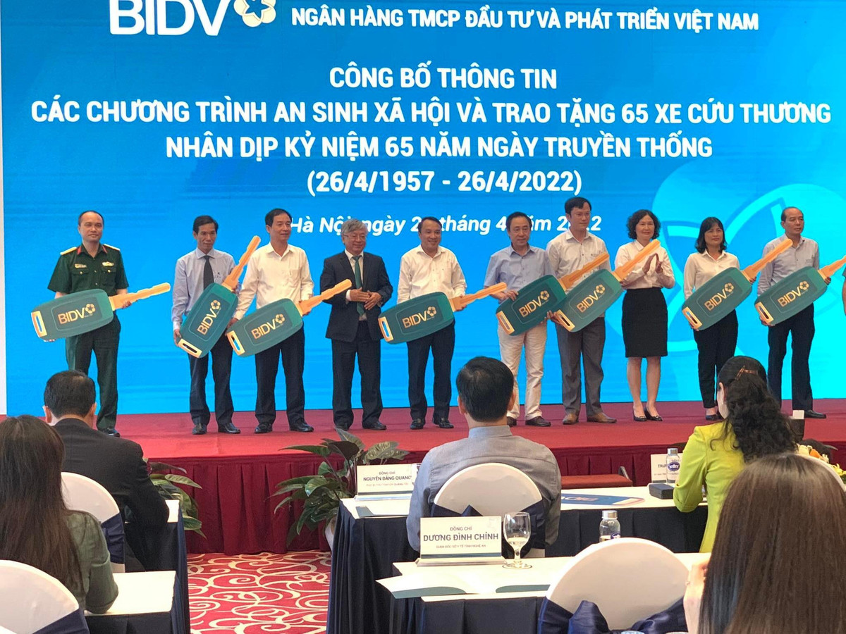 Cũng tại sự kiện, BIDV đã tổ chức trao tặng 65 xe cứu thương cho các cơ sở y tế tại 63 tỉnh, thành phố trên cả nước nhân dịp kỷ niệm 65 năm ngày thành lập. Xe cứu thương chất lượng cao do BIDV tài trợ được đặt hàng, sản xuất riêng, đáp ứng các tiêu chí kỹ thuật về môi trường, chất lượng tiêu chuẩn y tế.