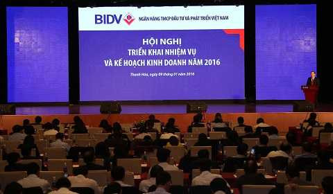 (VTC News) - Ngày 9/01/2016, tại Thanh Hóa, Ngân hàng TMCP Đầu tư và Phát triển Việt Nam (BIDV) đã tổ chức Hội nghị Tổng kết đánh giá tình hình thực hiện nhiệm vụ kinh doanh năm 2015, giai đoạn 5 năm 2011-2015 và trọng tâm nhiệm vụ kinh doanh 2016.