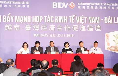 (VTC News) - Ngày 23/11/2015, tại Thành phố Đài Bắc (Đài Loan - Trung Quốc), Ngân hàng TMCP Đầu tư và Phát triển Việt Nam (BIDV) đã phối hợp với Văn phòng Kinh tế - Văn hóa Việt Nam tại Đài Bắc tổ chức thành công Diễn đàn Đẩy mạnh hợp tác kinh tế Việt Nam – Đài Loan với sự tham dự của hơn 500 đại biểu đại diện cho các bộ ngành, cơ quan quản lý, chuyên gia kinh tế, doanh nghiệp Việt Nam, các nhà đầu tư Đài Loan đã đang và dự kiến đầu tư vào Việt Nam.