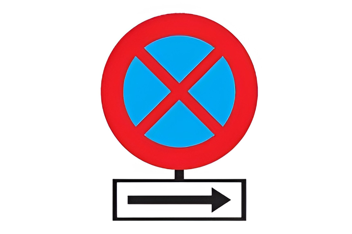 Biển phụ số S.503a đặt bên dưới biển báo "cấm dừng xe và đỗ xe" để chỉ hướng tác dụng của biển là bên phải.