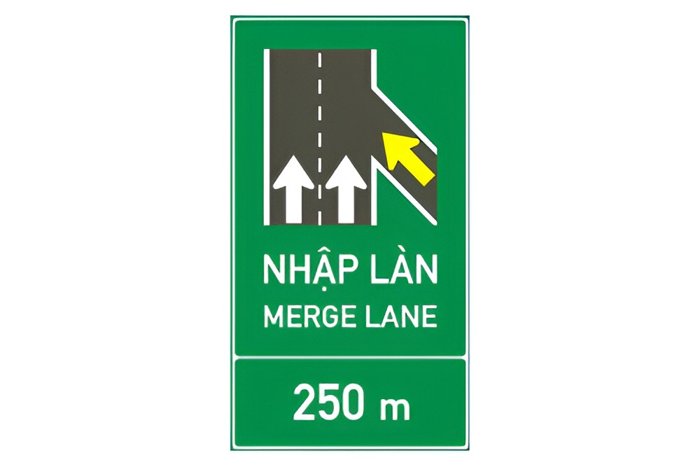 Chỉ dẫn vị trí nhập làn xe cách 250m.