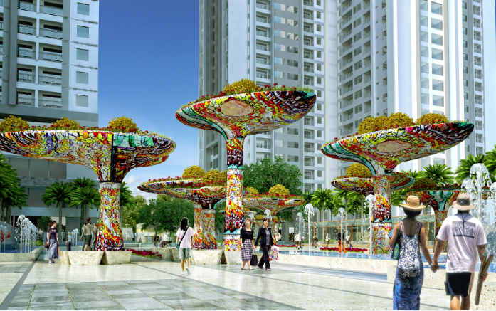 Tại quảng trường Ruby, các tháp cây đón nắng được những bàn tay tài năng tạo nên từ những mảnh gốm được lựa chọn kỹ càng cùng với thảm cỏ, cây xanh… giúp cư dân cảm nhận được sự trong lành và trải nghiệm không gian sống đậm chất Singapore ngay giữa lòng Hà Nội. Chính điều này đã giúp TNR Goldmark City ghi điểm mạnh mẽ đối với các khách hàng, đặc biệt là những khách mua thực sự có nhu cầu sinh sống.