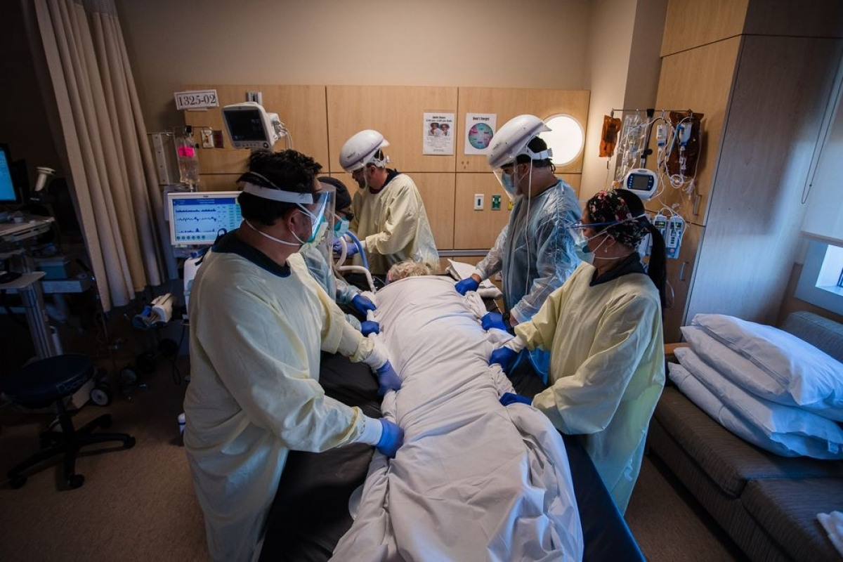 Điều trị cho một ca mắc COVID-19 ở Mission Hills, California (Ảnh: Bloomberg)
