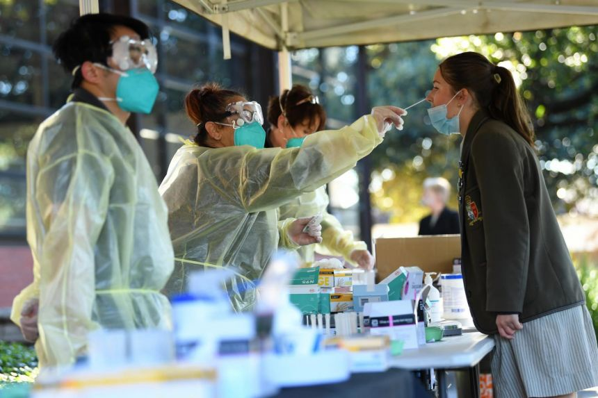 Một sinh viên được lấy mẫu xét nghiệm trong khuôn viên trường học tại Mỹ. (Ảnh: EPA-EFE)