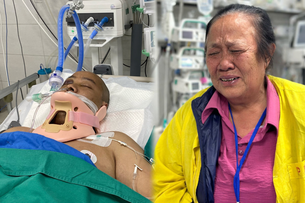 “Chỉ cần con còn sống, không mong có thể nuôi mẹ. Mẹ sẽ chăm con đến khi mẹ chết", bà Trần Thị Toan (Lạng Sơn) thì thào bên tai con trai Trần Văn Sơn (25 tuổi) đang hôn mê tại khoa Hồi sức cấp cứu - Bệnh viện Hữu Nghị Việt Đức.