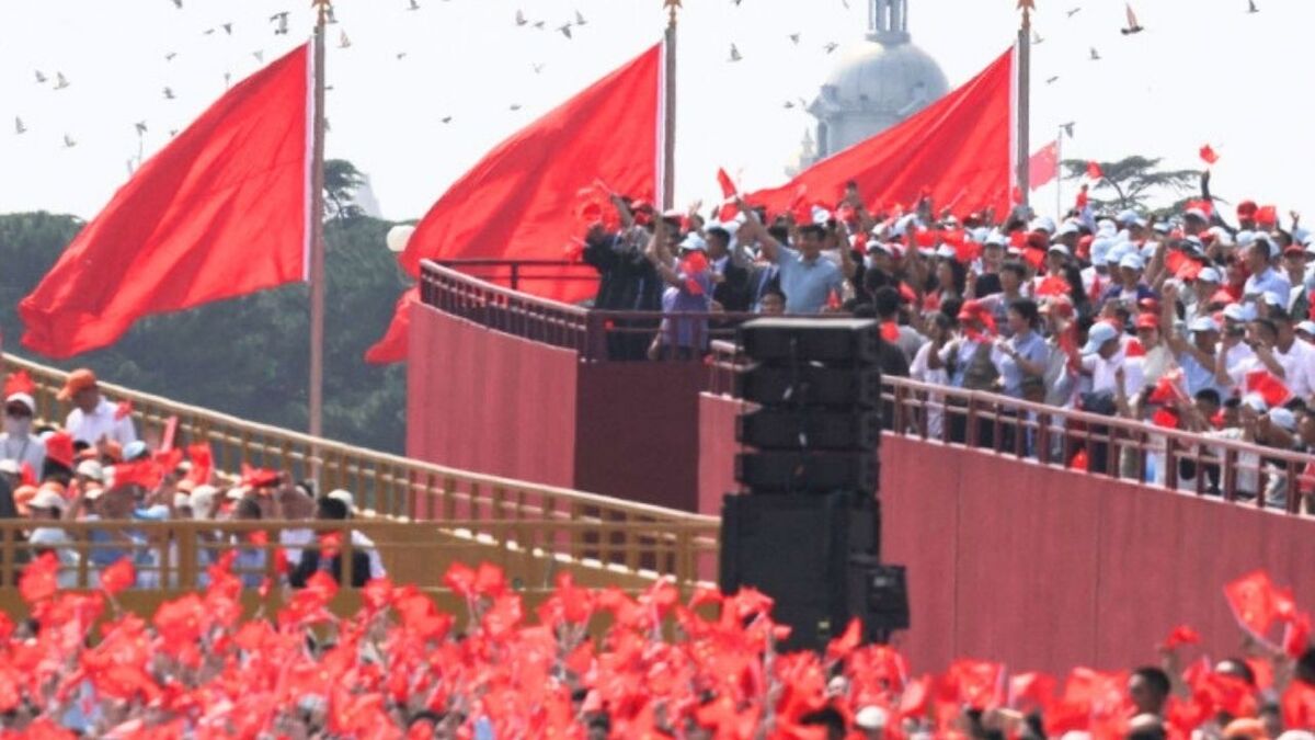 Tại lễ duyệt binh ở Quảng trường Thiên An Môn, hàng chục nghìn người dân Trung Quốc đã vẫy những lá quốc kỳ trên tay tạo nên một "biển cờ đỏ" rực rỡ.