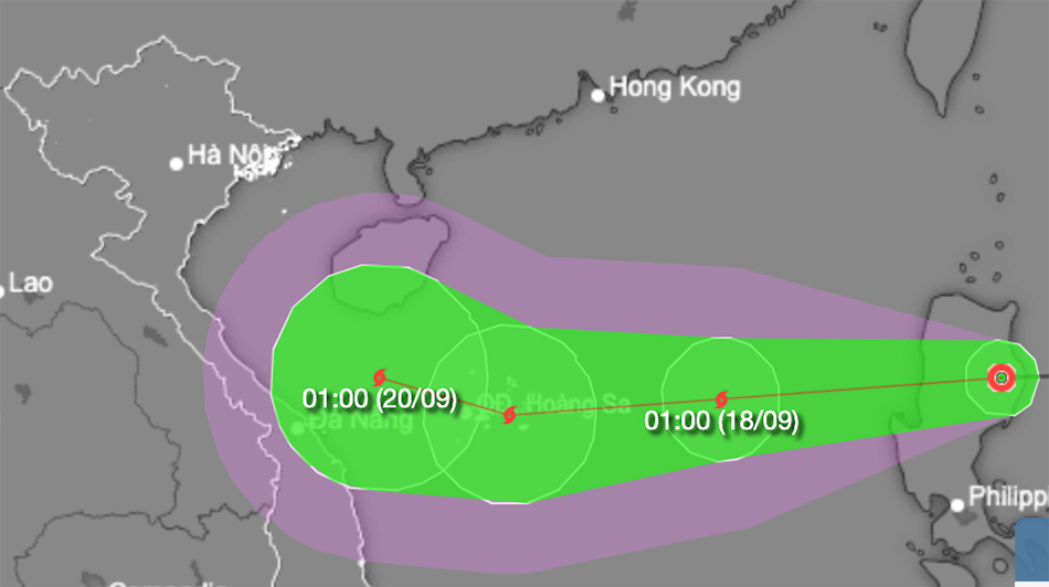 Trung tâm Dự báo khí tượng thuỷ văn quốc gia cho biết, lúc 1h ngày 17/9, vị trí tâm áp thấp nhiệt đới trên đất liền phía Đông đảo Luzon (Philippines). Sức gió mạnh nhất vùng gần tâm áp thấp nhiệt đới mạnh cấp 7 (50-61km/h), giật cấp 9, di chuyển chủ yếu theo hướng Tây với tốc độ khoảng 15km/h.