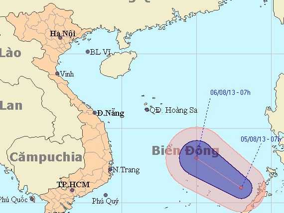 Dự báo trong 24 giờ tới, áp thấp nhiệt đới di chuyển theo hướng giữa Tây Tây Bắc và Tây Bắc, mỗi giờ đi được khoảng 15 km và còn có khả năng mạnh thêm. Đến 07 giờ ngày 06/8, vị trí tâm áp thấp nhiệt đới ở vào khoảng 13,0 độ Vĩ Bắc; 115,0 độ Kinh Đông, cách đảo Song Tử Tây (thuộc quần đảo Trường Sa) khoảng 200km về phía Bắc Đông Bắc. Sức gió mạnh nhất ở vùng gần tâm áp thấp nhiệt đới mạnh cấp 7 (tức là từ 50 đến 61 km một giờ), giật cấp 8, cấp 9.