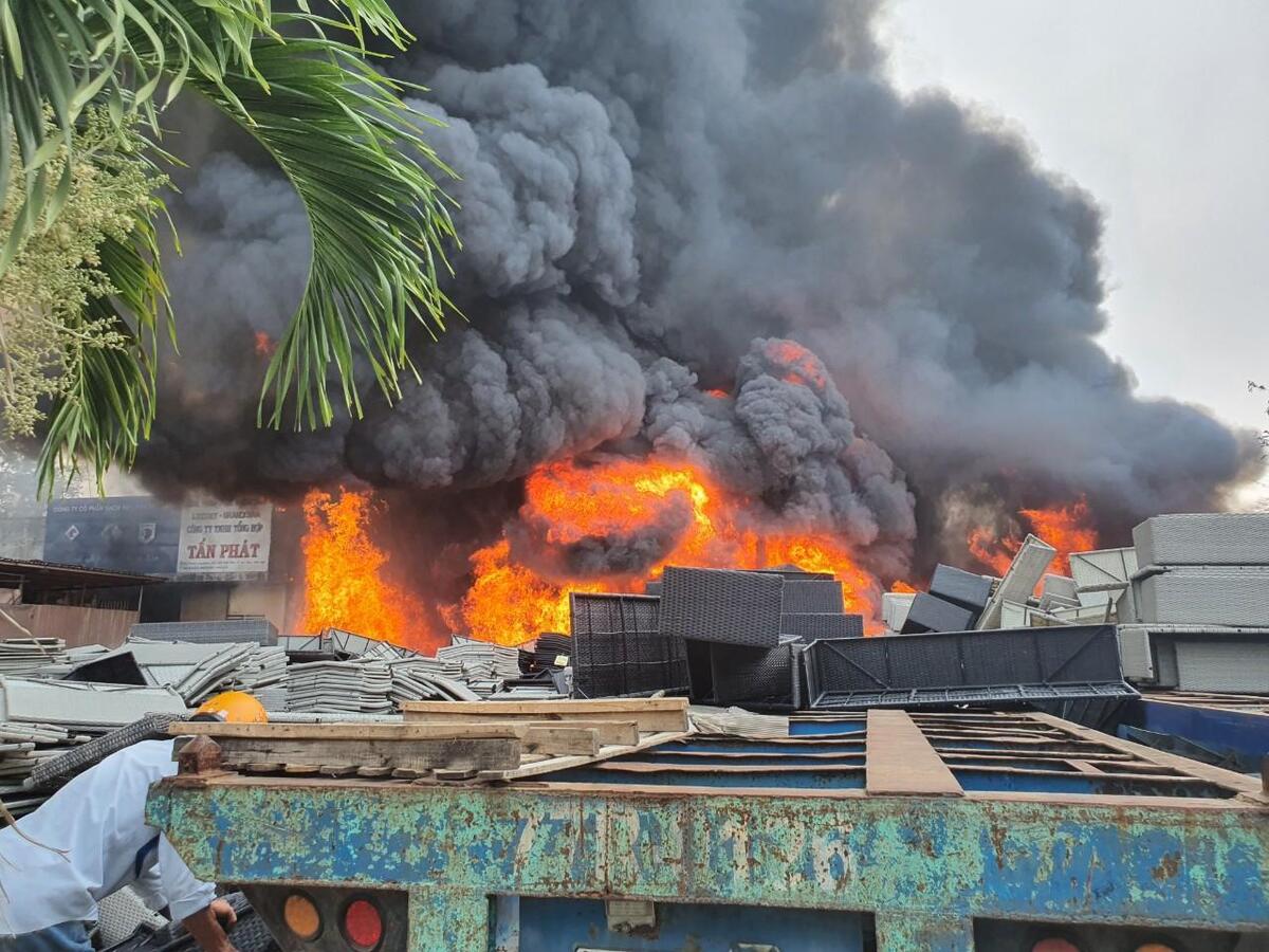 Đến 13h cùng ngày, ngọn lửa cơ bản được khống chế, tuy nhiên nhiều tài sản của công ty Tấn Phát bị thiêu rụi.