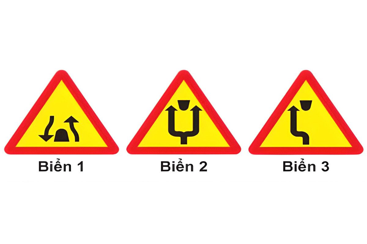 Hai biển này dùng để báo trước cho lái xe biết phía trước có chướng ngại vật, xe cần giảm tốc độ và đi theo chỉ dẫn trên biển báo. - D