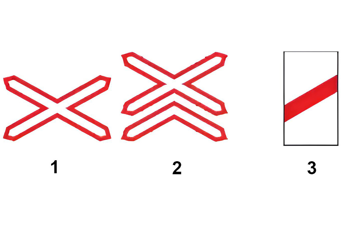 Để bổ sung cho biển số W.211 "giao nhau với đường sắt không có rào chắn", phải đặt biển số W.242 (a,b) để chỉ chỗ đường sắt giao vuông góc đường bộ.