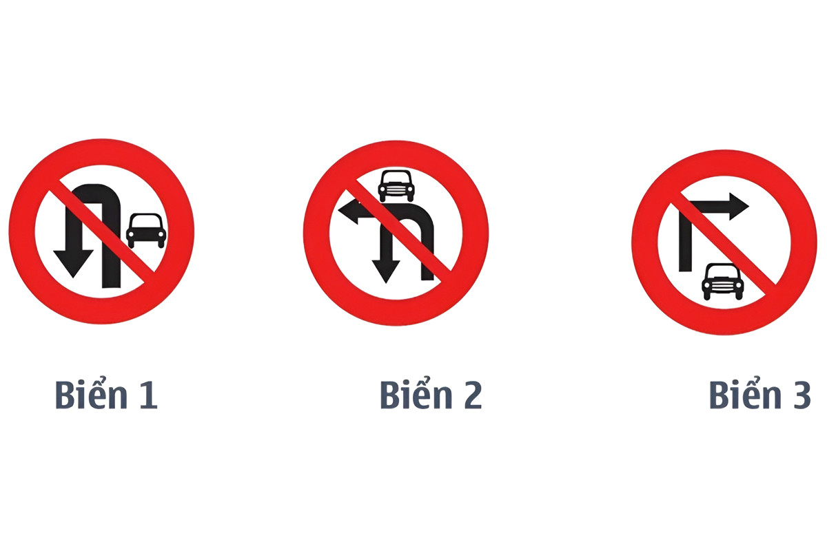 - Biển 2 là biển "cấm ô tô rẽ trái và quay xe" (ký hiệu P.124e), có hiệu lực cấm ô tô rẽ sang phía trái hoặc quay đầu xe.