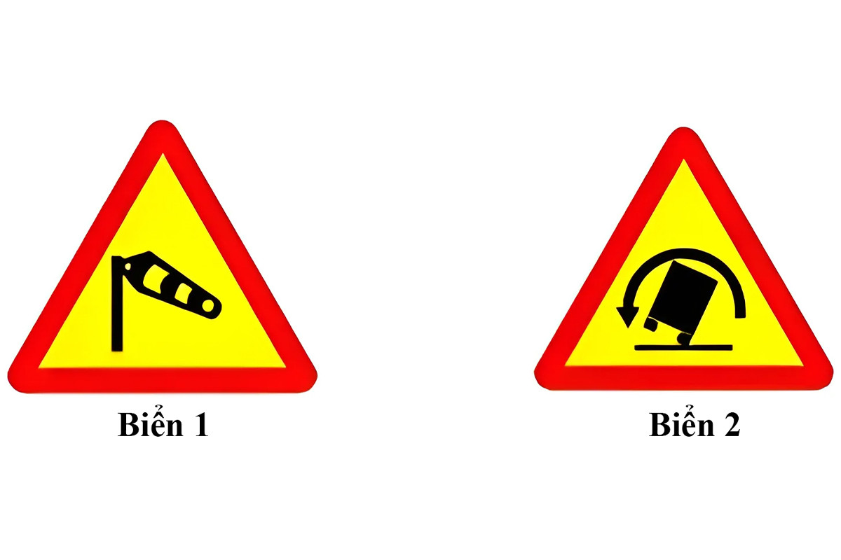 Gặp biển nào dưới đây người tham gia giao thông cần phải điều chỉnh tốc độ xe chạy cho thích hợp, đề phòng gió thổi mạnh gây lật xe?