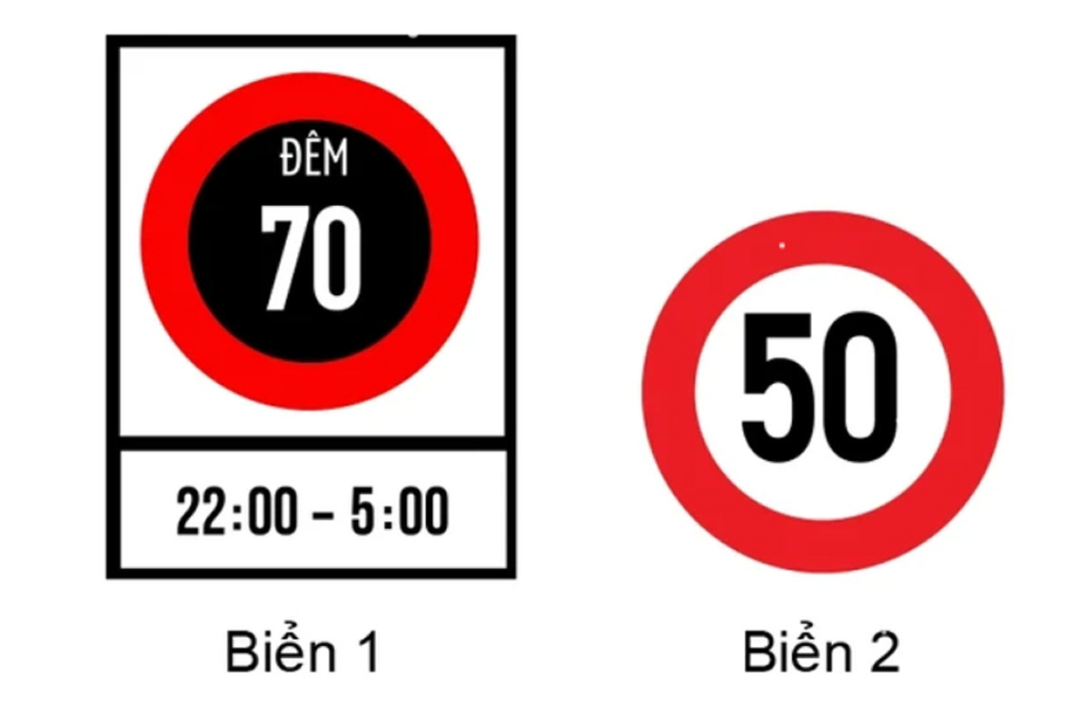 Biển nào thể hiện tốc độ tối đa cho phép về ban đêm đối với các phương tiện?