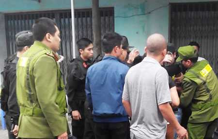 | Lực lượng chức năng đang trấn áp một đối tượng gây rối trong khu vực phân luồng bảo vệ Lễ khai ấn. |