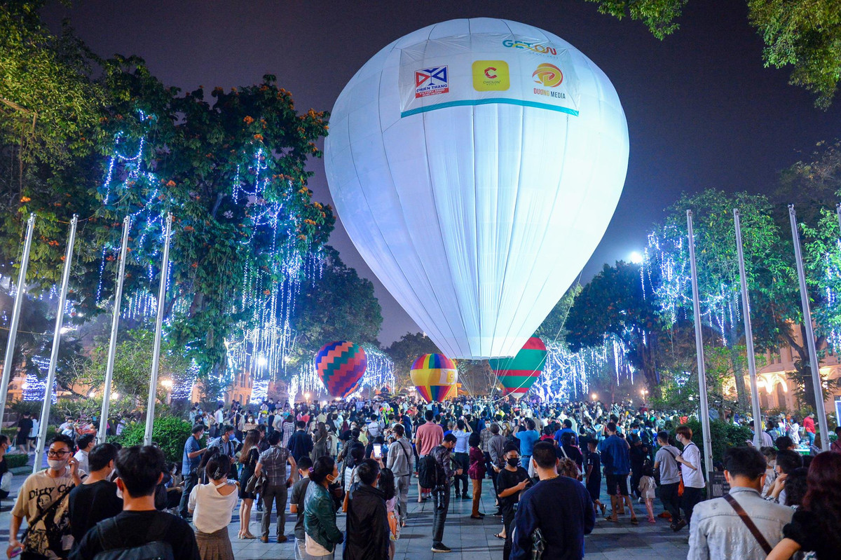 Hàng nghìn người dân và du khách đổ về phố đi bộ Hồ Gươm để tham gia lễ hội khinh khí cầu.