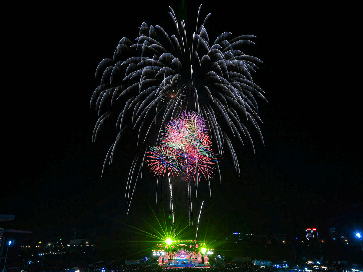Những chùm sáng nở rộ liên tục, đủ sắc màu, tạo nên khung cảnh ngoạn mục.