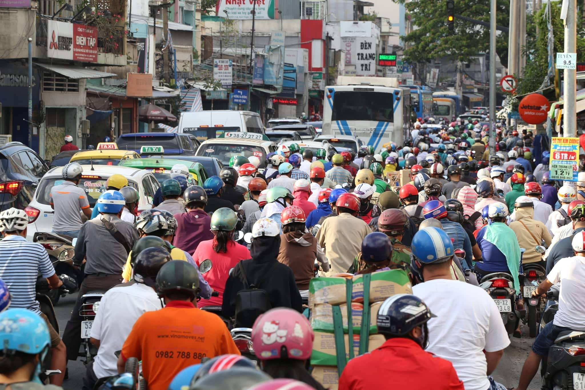 Đường Xô Viết Nghệ Tĩnh đoạn vào bến xe miền Đông ùn tắc.