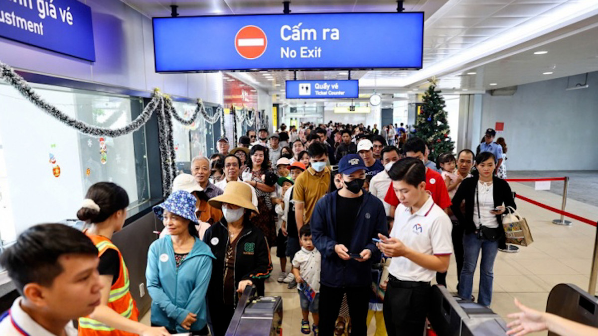 Hàng nghìn người dân xếp hàng trước nhà ga, chờ lên tàu trải nghiệm tuyến Metro đầu tiên của thành phố, sáng 22/12.