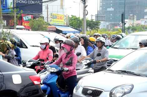 Vụ kẹt xe đúng vào lúc nhiều người đi làm nên tình trạng ngày càng tồi tệ. Nhiều người không đủ kiên nhẫn đã cho xe máy chạy băng trên lề đường. Nhiều phụ nữ tỏ vẻ mệt mỏi, lịm trong khói bụi xe máy.