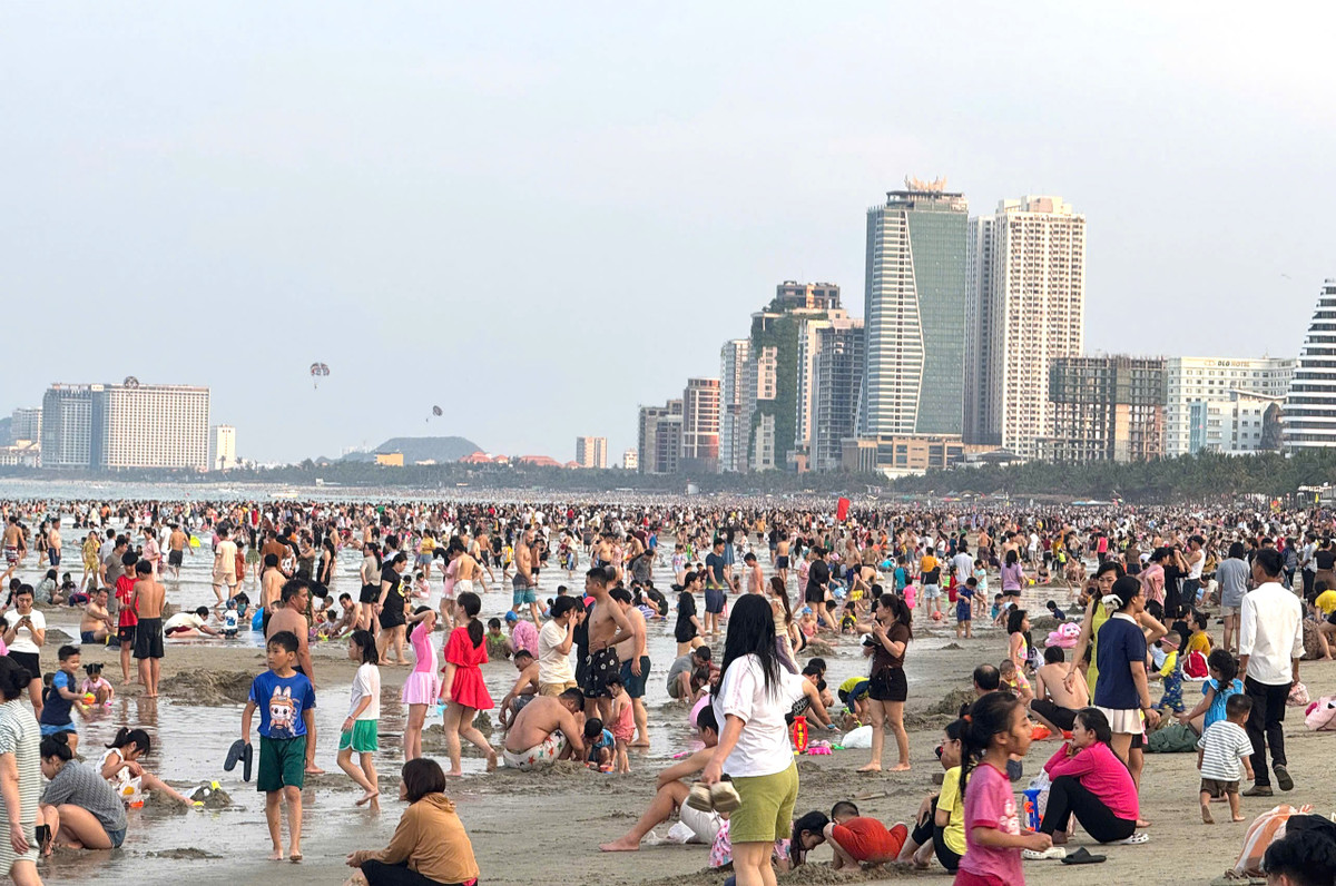 Càng về chiều, lượng khách đổ về càng đông, cả bãi tắm dài không còn chỗ trống.