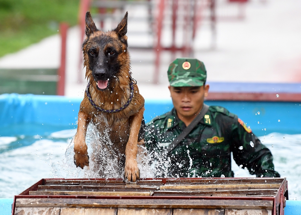 Hầu hết các chú chó nghiệp vụ đều thuần thục bơi và tỏ ra mạnh mẽ trước vật cản là bể nước