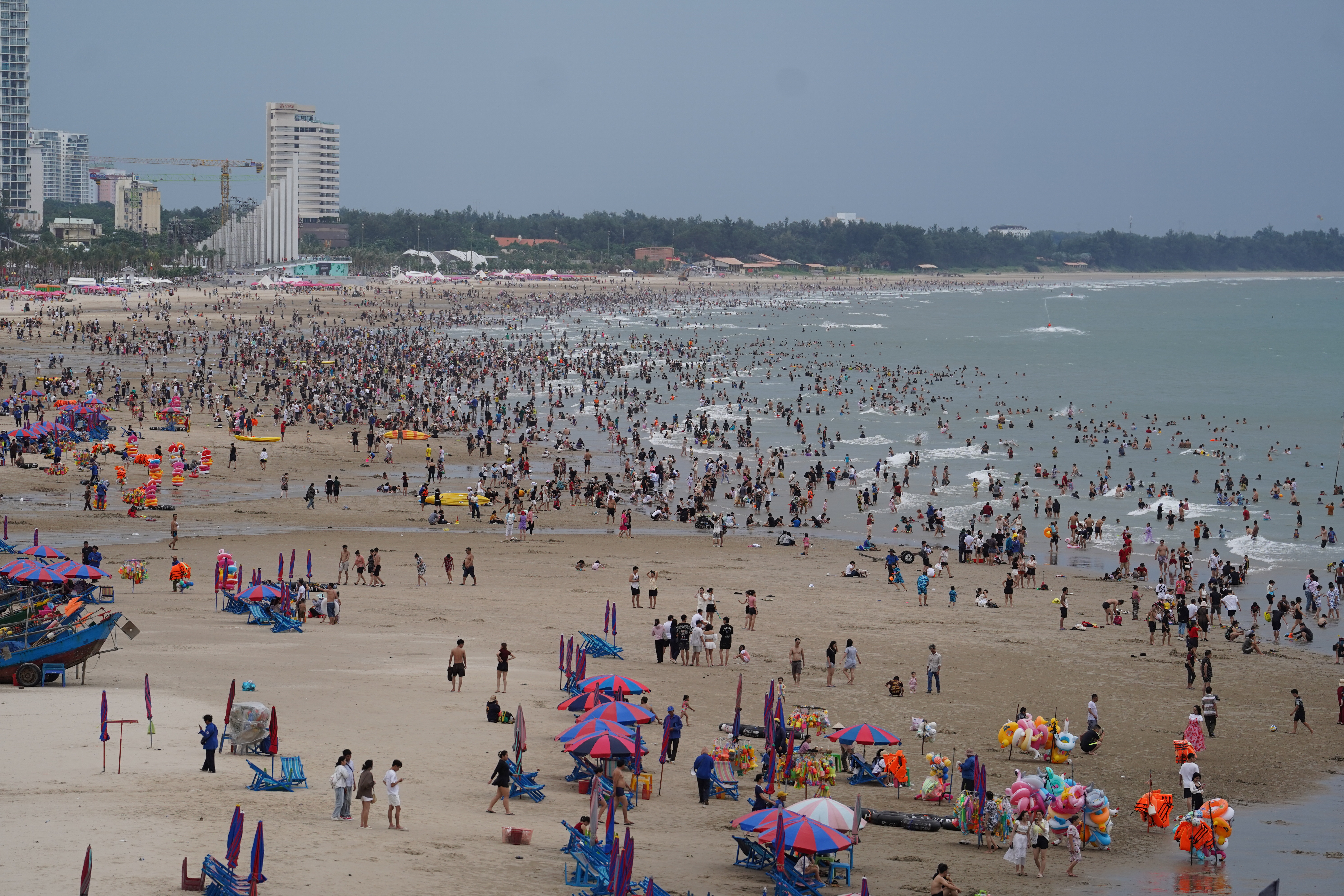 Nhiều du khách đổ ra tắm biển trong ngày nghỉ lễ thứ 3, biến bãi biển thành điểm hẹn sôi động với không khí náo nhiệt, rộn ràng.