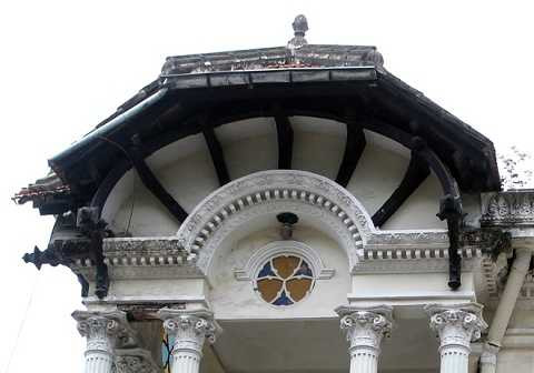Biệt thự có kiến trúc độc đáo, cổng vòm, bao lơn, trụ, cửa sổ, cửa chính đều được chế tác tỉ mỉ và được đánh giá là tinh xảo. Phần mái được lợp bằng ngói đỏ, qua thời gian đã nhuốm màu rêu phong càng làm ngôi biệt thự thêm cổ kính.