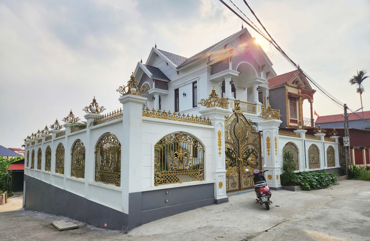 Ngôi nhà màu trắng nổi bật giữa vùng quê bởi quy mô và thiết kế sang trọng.