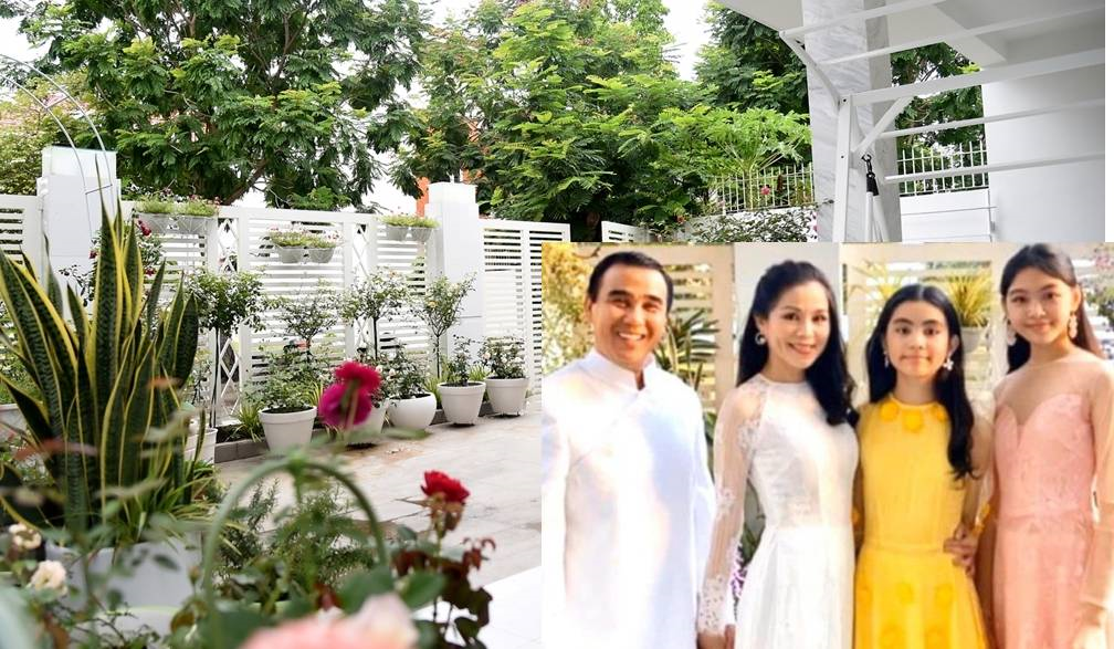 Ngôi biệt thự trị giá hơn 20 tỷ đồng tại TP.HCM của vợ chồng MC Quyền Linh có rất nhiều cây xanh. Trên sân thượng, họ trồng các loại rau, cây ăn quả như chanh, cóc, bưởi... và cả vườn hoa hồng luôn khoe sắc rực rỡ.