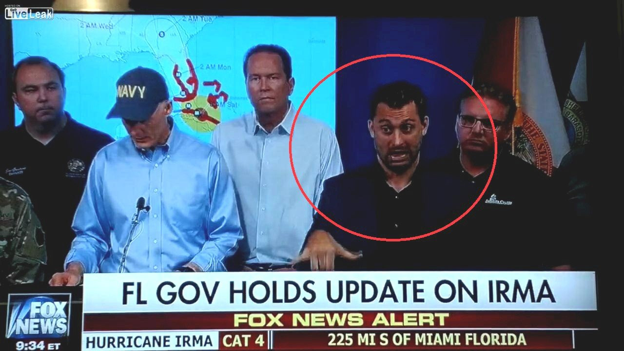 Trong khi ông Rick Scott, Thống đốc bang Florida, Mỹ, cập nhật tình hình bão Irma, biểu cảm phong phú của nam phiên dịch viên ngôn ngữ ký hiệu lại thu hút sự chú ý của người xem hơn cả.
