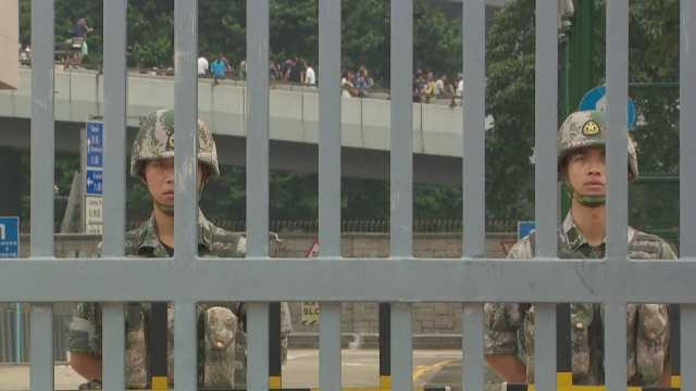 (VTC News) - Ít ai biết rằng chỉ cách nơi người biểu tình Hong Kong tập trung vài trăm mét có một tòa nhà kiên cố, là nơi đồn trú của quân đội Trung Quốc.
